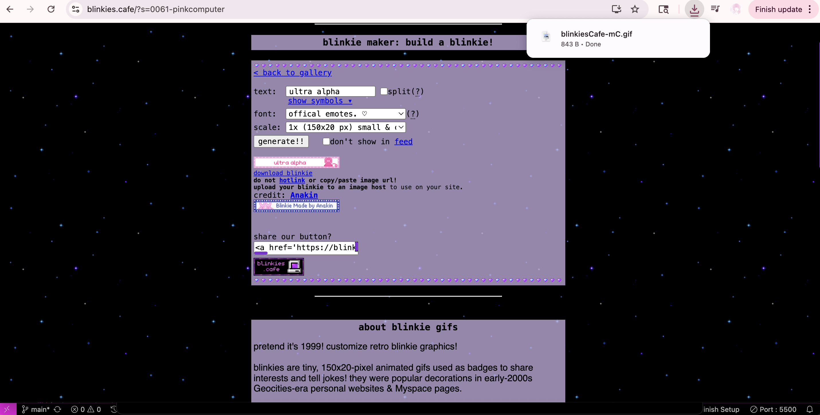 step 1: search up for blinkie resources. i like to use blinkies.cafe since their blinkies are customizable.